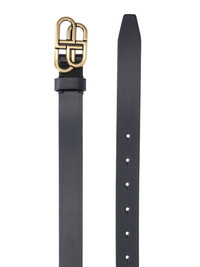 BALENCIAGA 'BB' LOGO BELT, LEATHER, BLACK, ADJUSTABLE, FRONTAL BUCKLE WITH GOLD LOGO. SPRING SUMMER 2022, WOMEN'S ACCESSORIES. PRODUCT INFO PRODUCT CODE 581690 1CH041000 COMPOSITION: 100% LEATHER - 100% LEATHER - HEIGHT: 1.1 CM - MADE ITALY - 581690 1CH04-1000