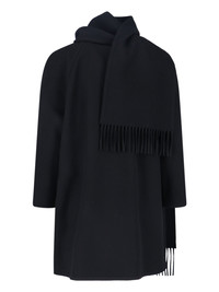 BALENCIAGA BLACK CASHMERE COAT WITH SNAP BUTTON CLOSURE ON THE COLLAR, ROUND NECKLINE, ADJUSTABLE MAXI SCARF, FRINGE DETAIL ON THE HEM, TWO SIDE POCKETS, STRAIGHT HEM. PRODUCT INFO PRODUCT CODE 850604 TTU131000 COMPOSITION: 100% CASHMERE SIZE AND FIT: OVERSIZED FIT MADE IN: ITALY