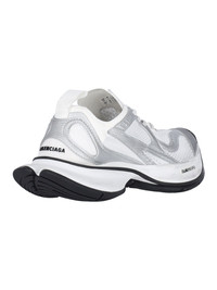 BALENCIAGA 'CIRCUIT' WHITE MESH SNEAKERS WITH ROUND TOE, LACE-UP CLOSURE, CONTRAST '3B' LOGO PRINT ON THE TONGUE, SILVER RUBBER INSERTS ON THE SIDE, BACK TAB, CONTRASTING LOGO ON THE BACK, OVERSIZED RUBBER SOLE, CONTRAST LOGO PRINT DETAIL ON THE SIDE. PRODUCT INFO PRODUCT CODE 793944 WFLGY9100 COMPOSITION: 49% POLYESTER, 31% POLYURETHANE, 20% NYLON MADE IN: CHINA - SOLE: 100% RUBBER