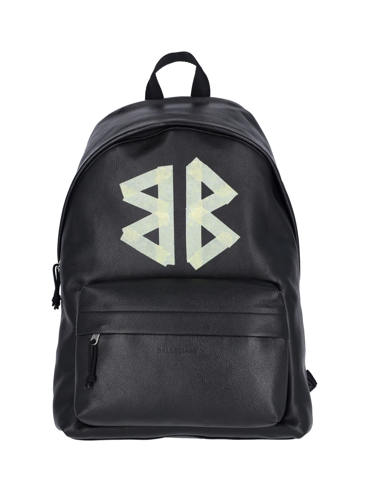 BALENCIAGA 'EXPLORER' BACKPACK IN BLACK HAMMERED LEATHER WITH HANDLE, TWO ADJUSTABLE BACK SHOULDER STRAPS, DOUBLE ZIP CLOSURE, CONTRAST 'TAPE TYPE' LOGO PRINT ON THE FRONT, FRONT ZIP POCKET, INNER FLAT POCKET, INNER ZIP POCKET, MAIN INNER COMPARTMENT. PRODUCT INFO PRODUCT CODE 503221 2ABND1000 COMPOSITION: 85% CALF LEATHER, 10% POLYAMIDE, 5% POLYESTER SIZE AND FIT: H 47 X W 38 X D 20 CM MADE IN: ITALY