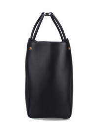 BALENCIAGA 'HAMPTON' BLACK LEATHER TOTE BAG WITH TWO HANDLES, REMOVABLE RING KEYRING, ADJUSTABLE AND REMOVABLE SHOULDER STRAP, MAGNETIC CLOSURE, GOLD LOGO PRINT ON THE FRONT, SIDE SNAP BUTTONS, TWO INNER SLIP POCKETS, AN INNER ZIP POCKET, A MAIN INNER COMPARTMENT. PRODUCT INFO PRODUCT CODE 813354 2ABAV1000 COMPOSITION: 100% CALF LEATHER SIZE AND FIT: H 25 X W 31 X D 16 CM MADE IN: ITALY -HANDLE SPAN: 12 CM