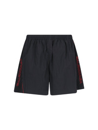 BALENCIAGA LOGO JOGGER SHORTS IN BLACK NYLON WITH RED TRIM, MEDIUM ELASTIC WAISTBAND, DRAWSTRING CLOSURE, TWO SIDE POCKETS, STRAIGHT LEG. PRODUCT INFO PRODUCT CODE 814568 TRO321000 COMPOSITION: 100% POLYAMIDE SIZE AND FIT: REGULAR FIT MADE IN: ITALY