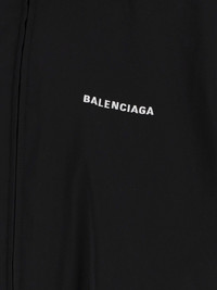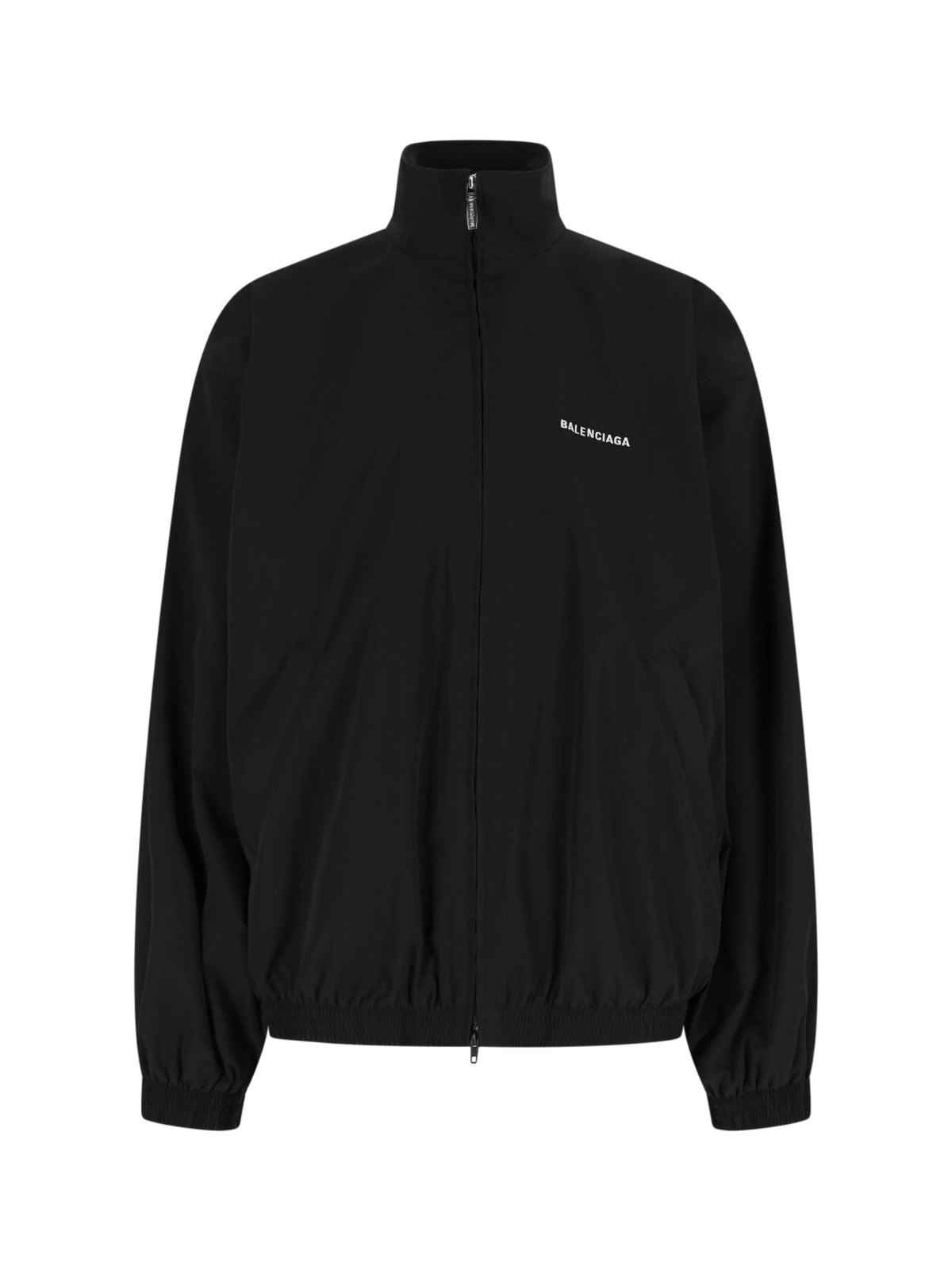 BALENCIAGA LOGO SPORTY JACKET IN BLACK FABRIC WITH HIGH NECK, ZIP CLOSURE, CONTRASTING CHEST LOGO, TWO SIDE POCKETS, CONTRASTING MAXI LOGO ON THE BACK, ELASTICATED CUFFS AND HEM. PRODUCT INFO PRODUCT CODE 839090 TRO311000 COMPOSITION: 100% POLYESTER SIZE AND FIT: SOFT FIT MADE IN: ITALY