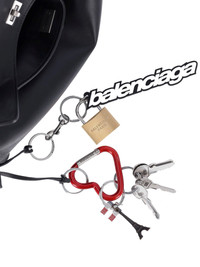 BALENCIAGA MEDIUM BAG WITH BALENCIAGA 'RODEO' CHARM IN BLACK CALF LEATHER WITH USED EFFECT, HANDLE, REMOVABLE LOGO CHARM DETAIL AND PADLOCK CHARM, REMOVABLE SHOULDER STRAP, FLAP TURN-AROUND CLOSURE, REMOVABLE DOUBLE RING KEYRING ON THE FRONT, MULTICOLOR METAL PENDANT CHARM DETAIL, SIDE SNAP BUTTONS, TWO MAXI FLAT BACK POCKETS, AN INNER ZIP POCKET, TWO SEPARATE INNER COMPARTMENTS, METAL FEET ON THE BOTTOM. PRODUCT INFO PRODUCT CODE 789772 2AA8U1000 COMPOSITION: 92% CALF LEATHER, 6% BRASS, 2% THERMOPLASTIC POLYURETHANE SIZE AND FIT: H 23.5 X W 35 X D 11 CM MADE IN: ITALY - HANDLE DROP: 20.5 CM - STRAP DROP: 57.5 CM