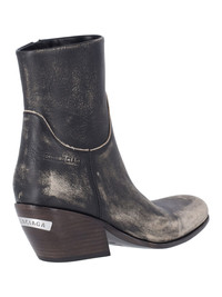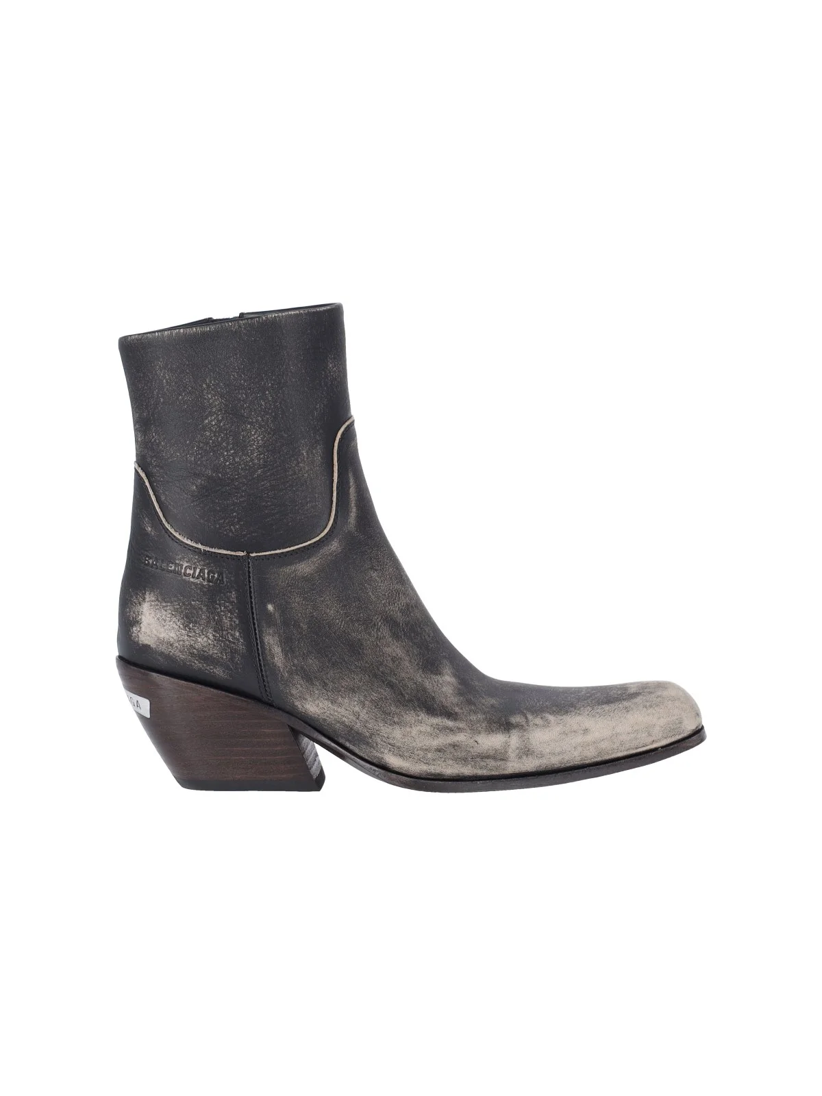 BALENCIAGA "MEMPHIS" BLACK LEATHER BOOTS WITH WORN DETAILS, SQUARE TOE, SIDE ZIP CLOSURE, TONE-ON-TONE EMBOSSED LOGO ON THE SIDE, LEATHER SOLE WITH LOGO DETAIL ON THE BACK. PRODUCT INFO PRODUCT CODE 853787 WB2271090 COMPOSITION: 100% LEATHER SIZE AND FIT: HEIGHT 5.5 CM MADE IN: ITALY - SOLE: 100% LEATHER