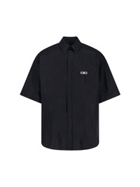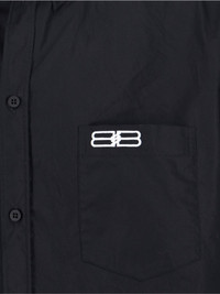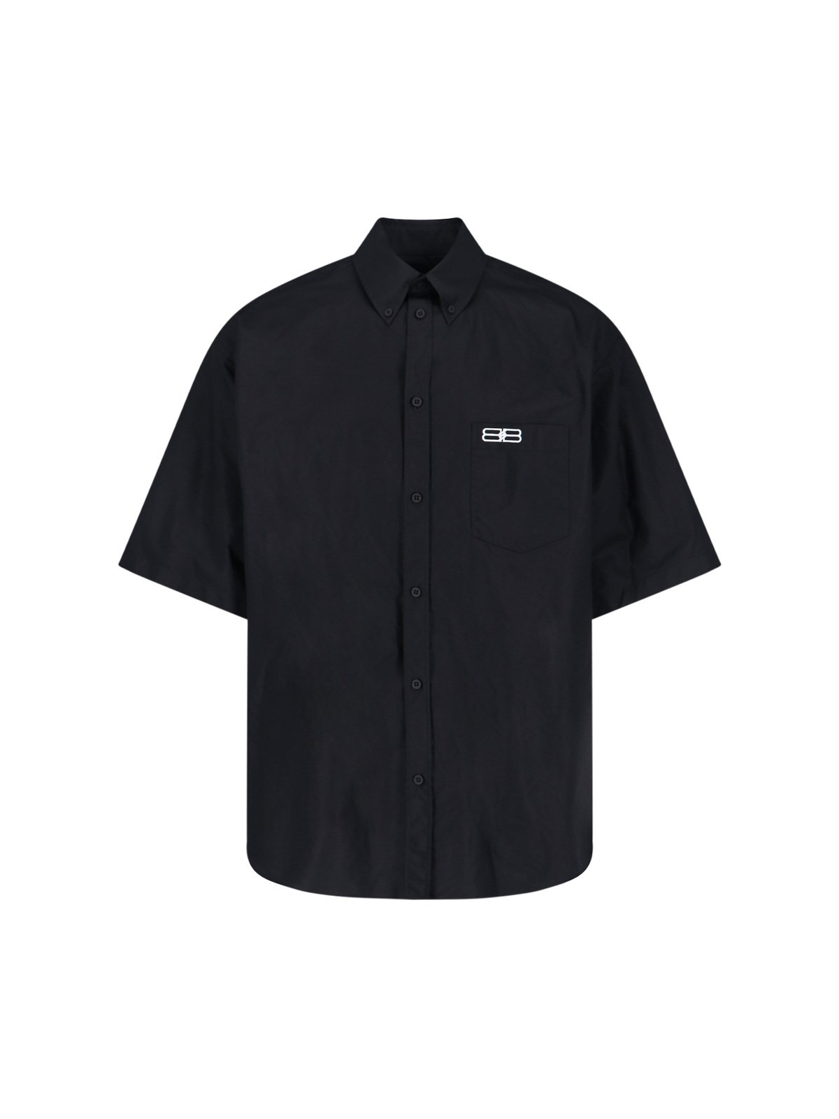 BALENCIAGA OVERSIZED SHIRT IN BLACK COTTON WITH CLASSIC BUTTON-DOWN COLLAR, BUTTON CLOSURE, SHORT SLEEVES, PATCH POCKET WITH CONTRASTING LOGO EMBROIDERY DETAIL ON THE CHEST, AND ROUNDED HEM. PRODUCT INFO PRODUCT CODE 850829 TRM281000 COMPOSITION: 100% COTTON SIZE AND FIT: OVERSIZED FIT MADE IN: ITALY