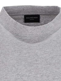 BALENCIAGA 'UNIFORM' OVERSIZE GREY COTTON CREW NECK T-SHIRT WITH SHORT SLEEVES, BLACK LOGO PRINT ON THE FRONT, MULTICOLOR LOGO PATCH ON SLEEVES, STRAIGHT HEM. PRODUCT INFO PRODUCT CODE 831305 TSVH41300 COMPOSITION: 100% COTTON SIZE AND FIT: REGULAR FIT MADE IN: PORTUGAL - "I/II/III" SIZE SCALE