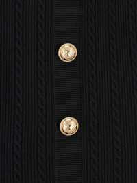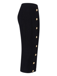 BALMAIN KNIT MIDI SKIRT IN BLACK VISCOSE BLEND WITH RIBBED PATTERN, MEDIUM ELASTIC WAISTBAND, GOLD METAL DECORATIVE BUTTONS ON THE FRONT, DOUBLE ZIP CLOSURE AT THE BACK, ADJUSTABLE BACK SLIT, STRAIGHT LEG. PRODUCT INFO PRODUCT CODE FF1LD066KI500PA COMPOSITION: 83% VISCOSE, 17% POLYESTER SIZE AND FIT: REGULAR FIT MADE IN: FRANCE - PRODUCT MADE FROM CERTIFIED RAW MATERIALS