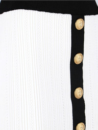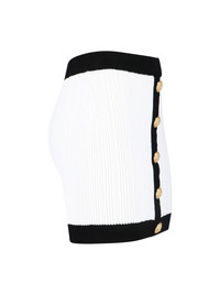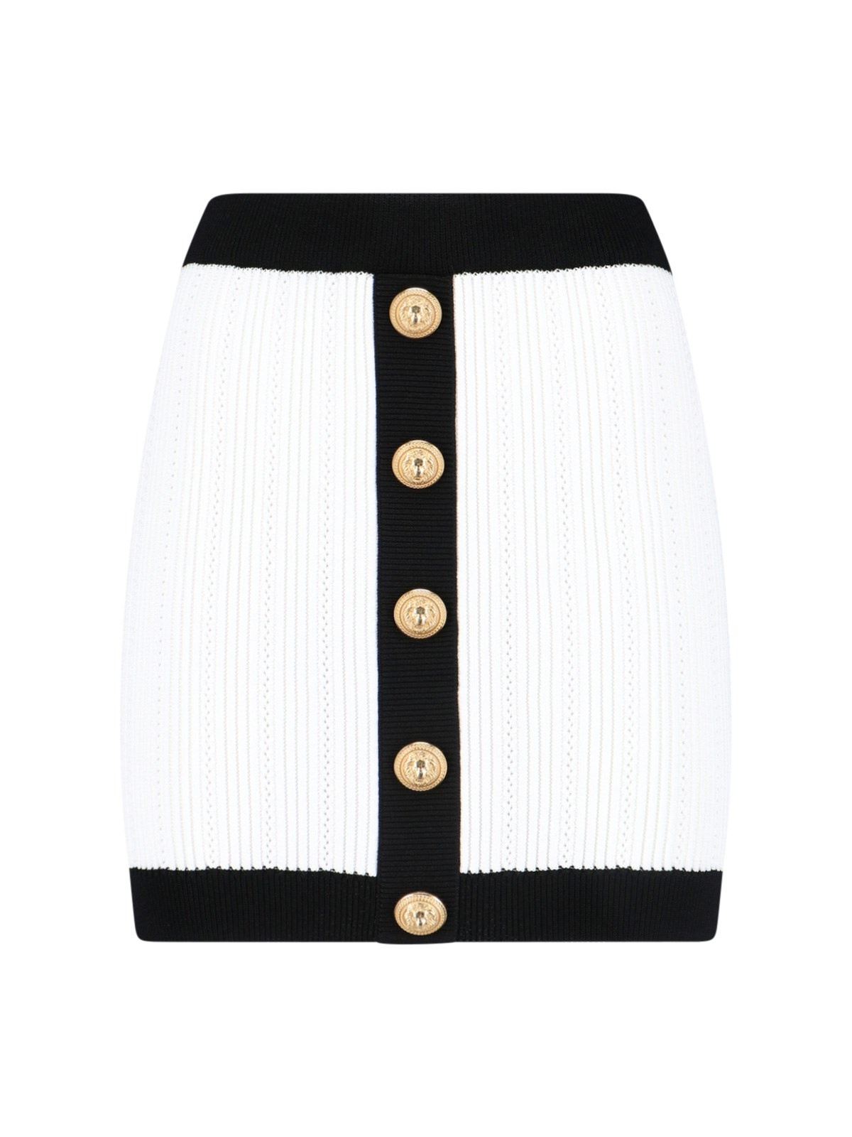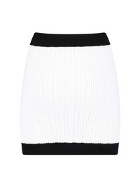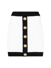 BALMANI WHITE VISCOSE BLEND MINI SKIRT WITH MEDIUM ELASTIC WAISTBAND, CONTRAST DETAILS, RIBBED PATTERN, LOGO BUTTON CLOSURE, STRAIGHT HEM. PRODUCT INFO PRODUCT CODE FF1LB039KI64GAB COMPOSITION: 84% VISCOSE, 16% POLYAMIDE SIZE AND FIT: REGULAR FIT MADE IN: ITALY