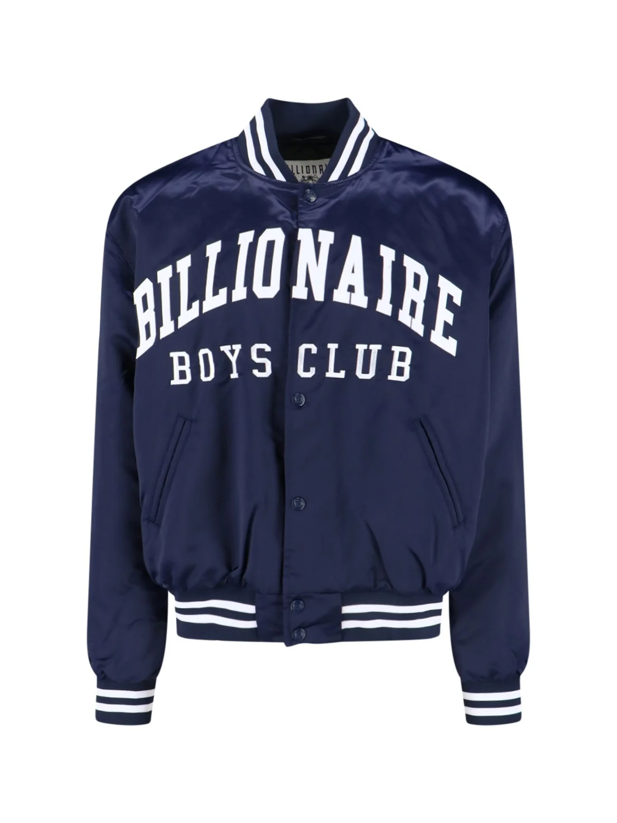 BILLIONAIRE BOYS CLUN "COLLEGE" BOMBER JACKET IN NAVY BLUE NYLON WITH RIBBED COLLAR, BUTTON CLOSURE, CONTRAST MAXI LOGO EMBROIDERY AT THE FRONT, TWO SIDE POCKETS, RIBBED TRIM, STRAIGHT HEM. PRODUCT INFO PRODUCT CODE B25204NAVY COMPOSITION: 100% NYLON SIZE AND FIT: REGULAR FIT MADE IN: CHINA