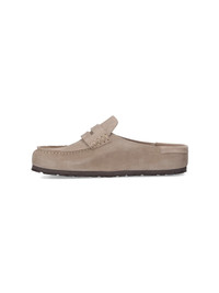 BIRKENSTOCK NAPLES SABOTS IN TAUPE SUEDE WITH ROUND TOE, EMBOSSED STITCHING DETAIL, SLIP-ON FIT, RUBBER SOLE. PRODUCT INFO PRODUCT CODE 1029710TAUPE COMPOSITION: 100% CALF LEATHER MADE IN: PORTUGAL - SOLE: 100% RUBBER
