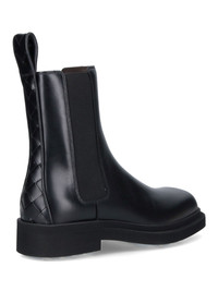 BOTTEGA VENETA 'BEN' ANKLE BOOTS IN BLACK CALF LEATHER WITH SQUARE TOE, ELASTIC SIDE BANDS, WOVEN DETAIL AT THE BACK, TOP LIGUETTE, SLIP-ON FIT, RUBBER SOLE. PRODUCT INFO PRODUCT CODE 837814 V2WT01000 COMPOSITION: 100% CALF LEATHER SIZE AND FIT: HEEL HEIGHT 4 CM MADE IN: ITALY - SOLE: 100% RUBBER