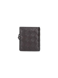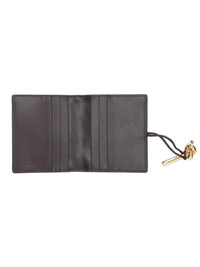 BOTTEGA VENETA 'ANDIAMO' BI-FOLD CARD HOLDER IN BROWN LAMB NAPPA LEATHER WITH 'INTRECCIATO' PATTERN, INTERLOCKING CLOSURE WITH GOLD METAL 'KNOT' LOGO CHARM, FIVE INNER CARD SLOTS, TWO INNER FLAT POCKETS. PRODUCT INFO PRODUCT CODE 836943 VCPP22190 COMPOSITION: 100% LAMBSKIN SIZE AND FIT: H 10 X W 9 CM MADE IN: ITALY