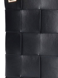 BOTTEGA VENETA 'INTRECCIATO' POUCH, BLACK LEATHER, TOP ZIPPER CLOSURE, GOLD METALLIC HARDWARE, ONE INSIDE POCKET. PRODUCT INFO PRODUCT CODE 652931 VCQC18425 - 100% LEATHER - H 20 X W 28 X D 1 CM MADE IN: ITALY