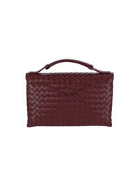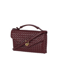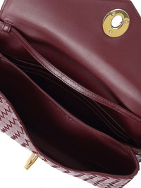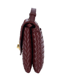 BOTTEGA VENETA 'KNOT LOCK' BAG IN BURGUNDY RED LAMBSKIN WITH 'INTRECCIATO' PATTERN, ADJUSTABLE HANDLE, REMOVABLE SHOULDER STRAP, FLAP CLOSURE, 'KNOT LOGO DETAIL." IN GOLD METAL, A MAXI FLAT BACK POCKET, FOUR INTERNAL CARD SLOTS, A MAXI FLAT POCKET INSIDE, TWO SEPARATE INTERNAL COMPARTMENTS. PRODUCT INFO PRODUCT CODE 817191 V08Z02250 COMPOSITION: 100% LAMBSKIN SIZE AND FIT: H 16 X W 25 X D 5.5 CM MADE IN: ITALY - HANDLE DROP: 12 CM - STRAP DROP: 46 CM