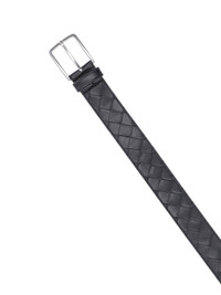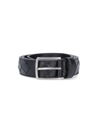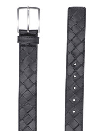 BOTTEGA VENETA WOVEN BELT IN BLACK LEATHER WITH ICONIC WOVEN PATTERN, AND SILVER BUCKLE, ADJUSTABLE. PRODUCT INFO PRODUCT CODE 609182 V3IM18803 COMPOSITION: 100% LEATHER SIZE AND FIT: HEIGHT 3.5 CM MADE IN: ITALIA