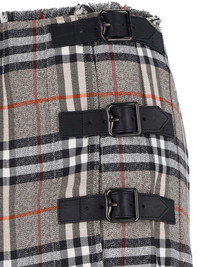 BURBERRY 'CHECK' MIDI SKIRT IN BROWN WOOL WITH PLEATED DESIGN, MID WAIST, SIDE LEATHER STRAP CLOSURE, STRAIGHT HEM. PRODUCT INFO PRODUCT CODE 8110428C3142 COMPOSITION: 100% WOOL SIZE AND FIT: REGULAR FIT MADE IN: POLAND - TRIMS: 100% CALF LEATHER