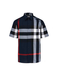 BURBERRY CHECK SHIRT IN BLUE COTTON WITH GREY AND RED CHECK PATTERN, CLASSIC COLLAR, SHORT SLEEVES, MOTHER-OF-PEARL BUTTON CLOSURE, CHEST PATCH POCKET, CURVED HEM. PRODUCT INFO PRODUCT CODE 8079592A1960 COMPOSITION: 100% COTTON SIZE AND FIT: SLIM FIT MADE IN: VIETNAM
