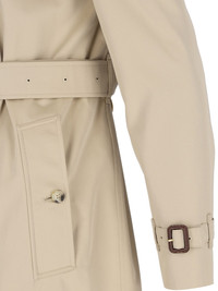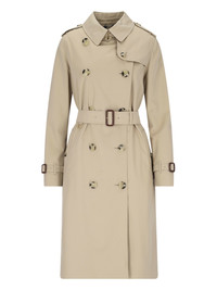 BURBERRY DOUBLE-BREASTED BEIGE COTTON TRENCH COAT WITH CLASSIC COLLAR WITH HOOK CLOSURE, BUTTON CLOSURE, ADJUSTABLE STRAP CUFFS, ADJUSTABLE WAIST BELT, TWO SIDE POCKETS, CENTER BACK VENT, STRAIGHT HEM. PRODUCT INFO PRODUCT CODE 8079414A1366 COMPOSITION: 100% COTTON SIZE AND FIT: ADJUST MADE IN: INGHILTERRA