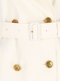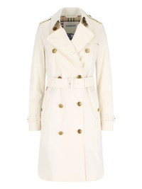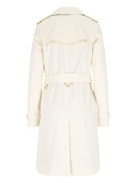 BURBERRY DOUBLE-BREASTED WHITE COTTON TRENCH COAT WITH CLASSIC LAPELS, BUTTON CLOSURE, ADJUSTABLE BELT AT THE WAIST, TWO SIDE POCKETS, CENTRAL BACK VENT, STRAIGHT HEM. PRODUCT INFO PRODUCT CODE 8111149C2205 COMPOSITION: 100% COTTON SIZE AND FIT: REGULAR FIT MADE IN: U.K.