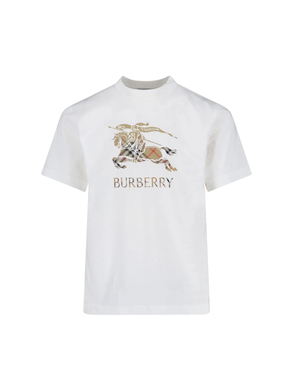 BURBERRY 'EKD' WHITE COTTON CREW NECK T-SHIRT WITH SHORT SLEEVES, 'EKD' LOGO 'CHECK' PATTERN ON THE FRONT, STRAIGHT HEM. PRODUCT INFO PRODUCT CODE 8119014B7078 COMPOSITION: 100% COTTON SIZE AND FIT: REGULAR FIT MADE IN: PORTUGAL