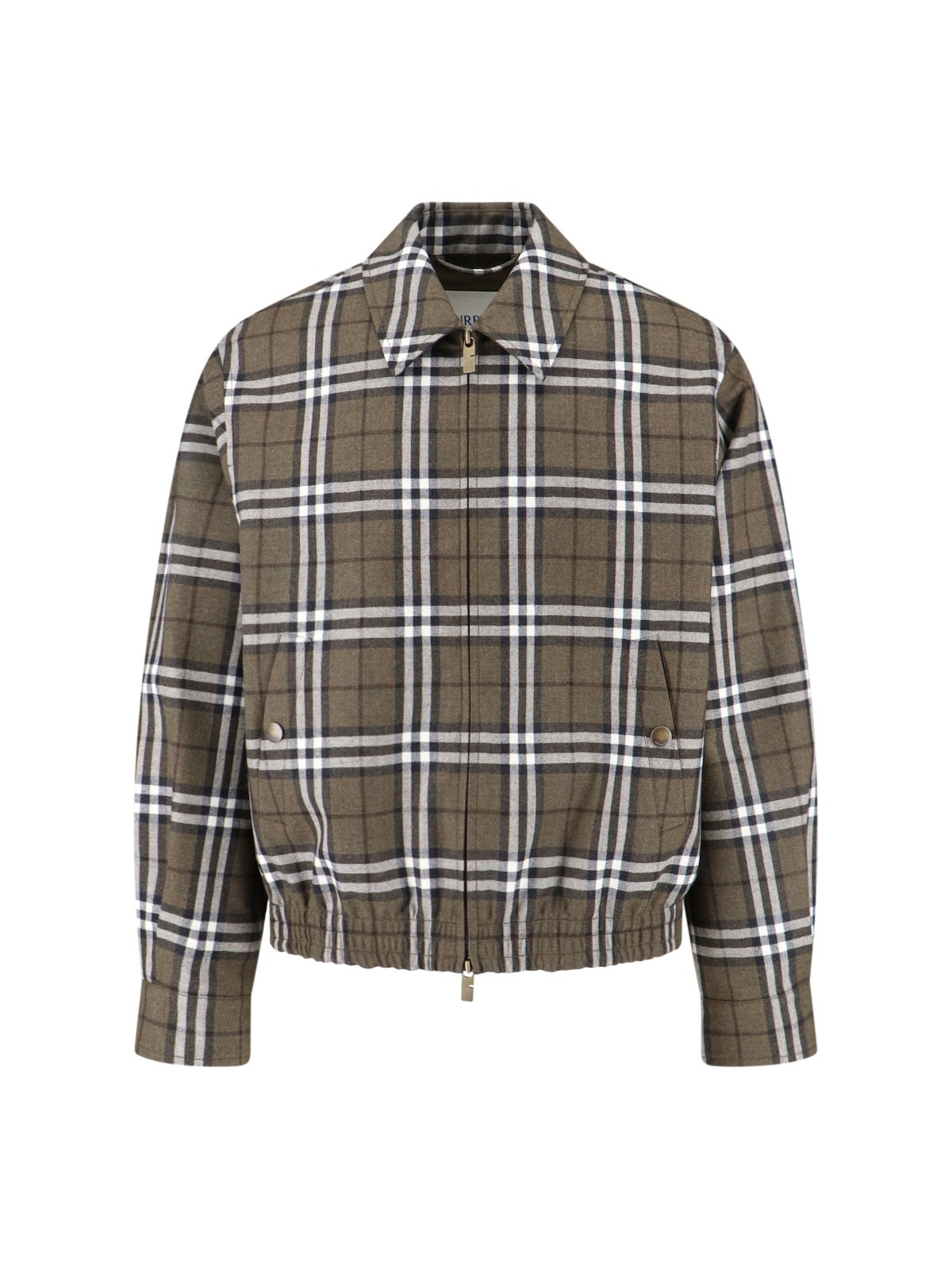 BURBERRY 'HARRINGTON' BROWN WOOL BOMBER JACKET WITH 'CHECK' PATTERN, CLASSIC COLLAR, DOUBLE ZIP CLOSURE, TWO SIDE POCKETS, BUTTON CUFFS, ELASTIC WAISTBAND, STRAIGHT HEM. PRODUCT INFO PRODUCT CODE 8110207C3078 COMPOSITION: 100% VIRGIN WOOL SIZE AND FIT: REGULAR FIT MADE IN: ITALY
