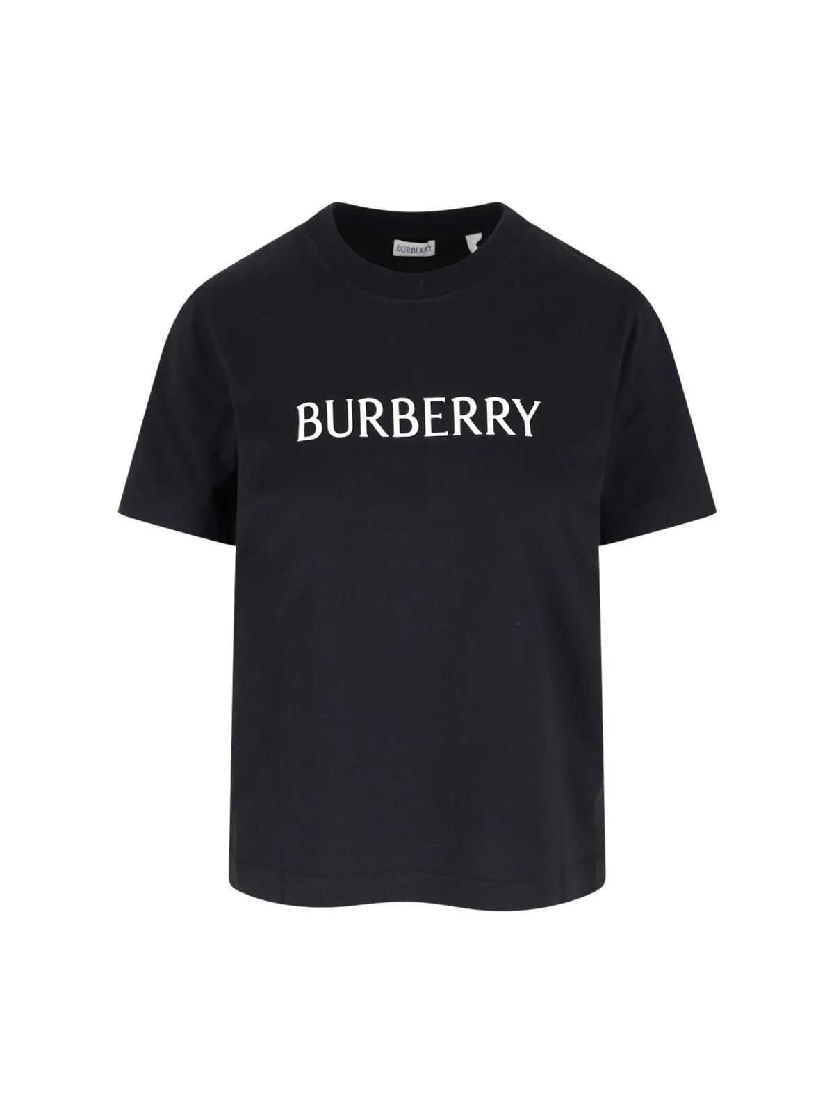 BURBERRY LOGO BLACK COTTON CREW NECK T-SHIRT WITH SHORT SLEEVES, CONTRASTING LETTERING LOGO AT THE FRONT, STRAIGHT HEM. PRODUCT INFO PRODUCT CODE 8118977A1189 COMPOSITION: 100% COTTON SIZE AND FIT: REGULAR FIT MADE IN: PORTUGAL