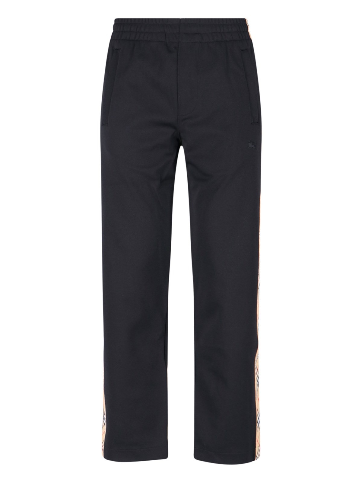 BURBERRY LOGO SPORTS PANTS IN BLACK COTTON BLEND WITH ELASTIC WAISTBAND, TWO SIDE ZIP POCKETS, SIDE LOGO BAND DETAIL, BACK ZIP POCKET AND STRAIGHT LEG. PRODUCT INFO PRODUCT CODE 8110564A1189 COMPOSITION: 54% POLYESTER, 46% COTTON SIZE AND FIT: REGULAR FIT MADE IN: PORTUGAL