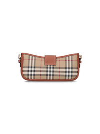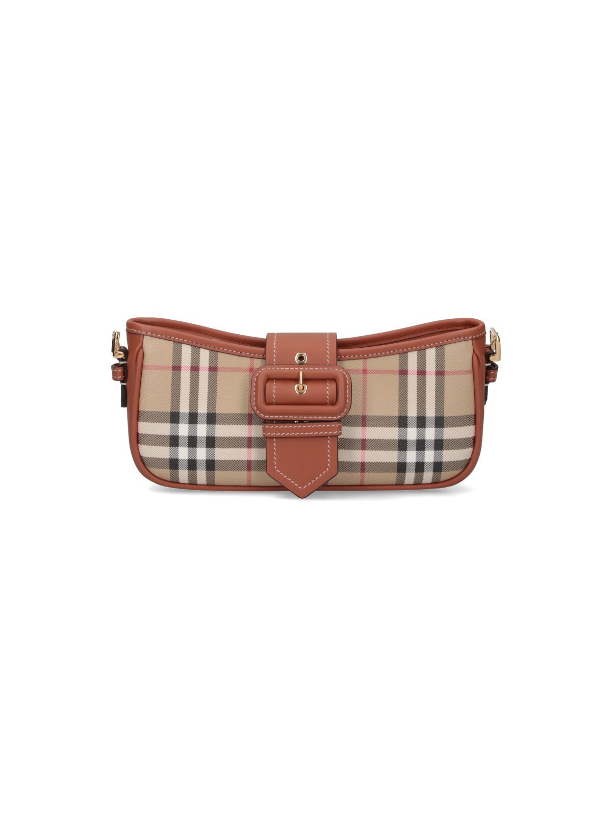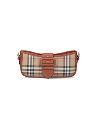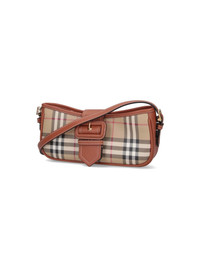 BURBERRY 'SLING' SHOULDER BAG IN BEIGE FABRIC WITH BROWN LEATHER TRIM, ADJUSTABLE AND REMOVABLE SHOULDER STRAP, BUTTON BUCKLE CLOSURE, INNER SLIP POCKET, MAIN ZIP COMPARTMENT. PRODUCT INFO PRODUCT CODE 8109796A9534 COMPOSITION: 55% POLYURETHANE, 25% POLYESTER, 20% COTTON SIZE AND FIT: H 11.5 X W 25.5 X D 6 CM MADE IN: ITALY - TRIMS: 100% CALF LEATHER