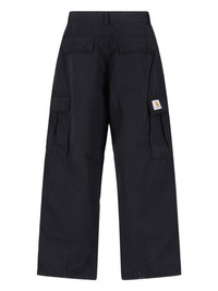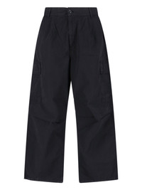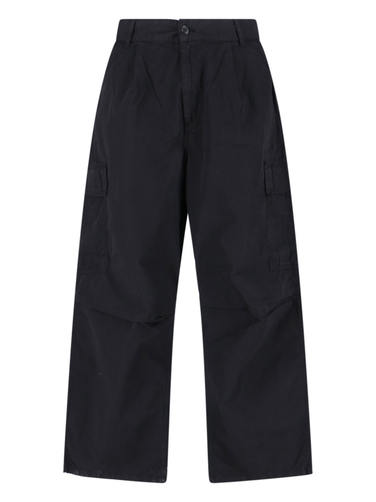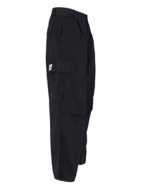 CARHARTT WIP COLE BLACK COTTON CARGO PANTS WITH MID WAIST, BELT LOOPS, BUTTON AND ZIP CLOSURE, FRONT PLEATS, TWO SIDE POCKETS, TWO SIDE CARGO POCKETS, LOGO LABEL DETAIL, TWO BACK FLAP POCKETS, WIDE LEG. PRODUCT INFO PRODUCT CODE I03556589GD COMPOSITION: 100% COTTON SIZE AND FIT: REGULAR FIT MADE IN: TUNISIA - "DENIM" SIZE SCALE