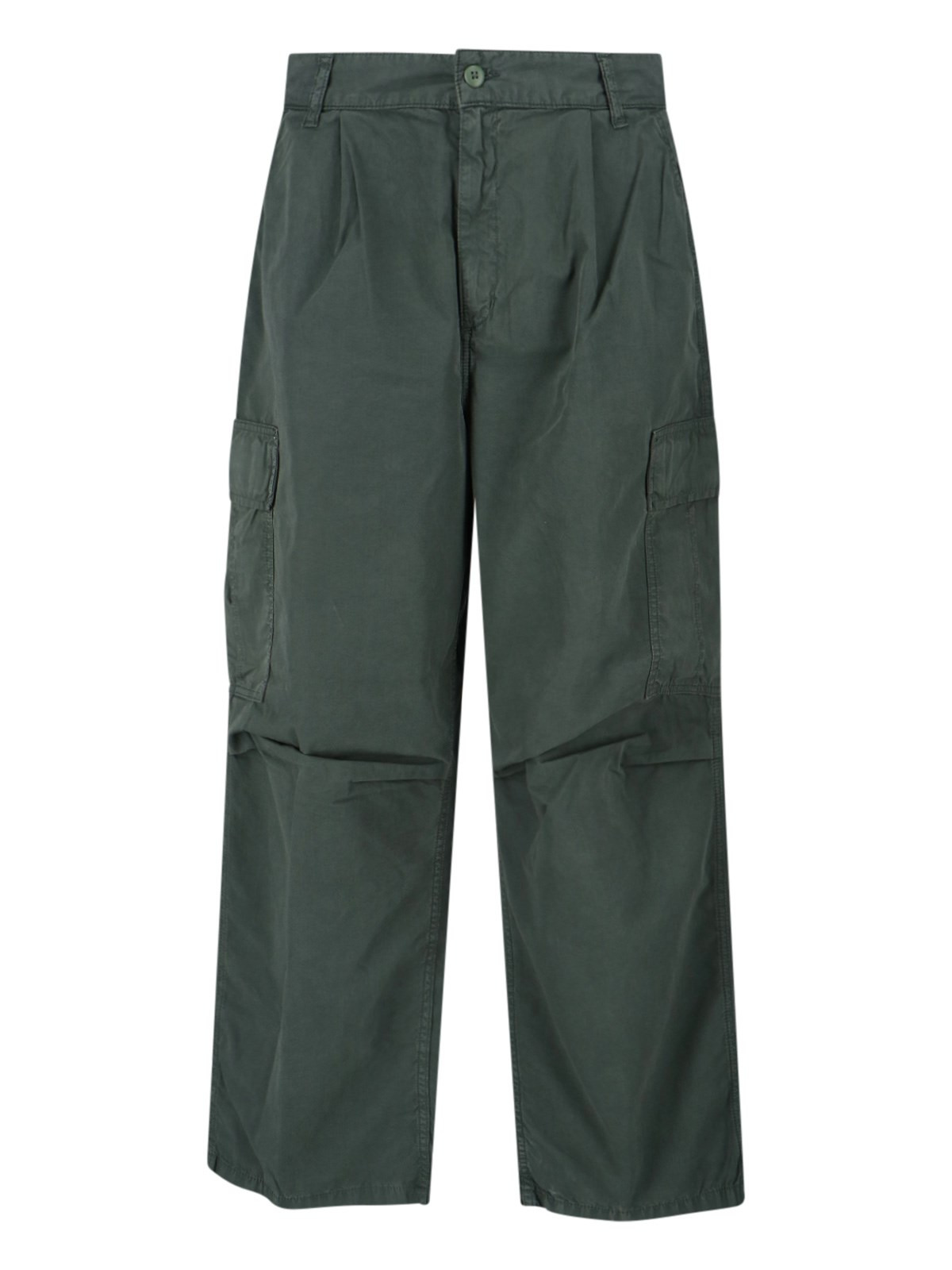 CARHARTT WIP COLE GREEN COTTON CARGO PANTS WITH MID WAIST, BELT LOOPS, BUTTON AND ZIP CLOSURE, TWO SIDE POCKETS, TWO SIDE CARGO POCKETS, LOGO LABEL DETAIL ON THE BACK, TWO BUTTON FLAP POCKETS ON THE BACK, STRAIGHT LEG. PRODUCT INFO PRODUCT CODE I0355652ZXGD COMPOSITION: 100% COTTON SIZE AND FIT: REGULAR FIT MADE IN: TUNISIA - "DENIM" SIZE SCALE