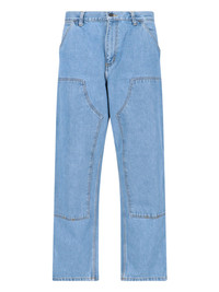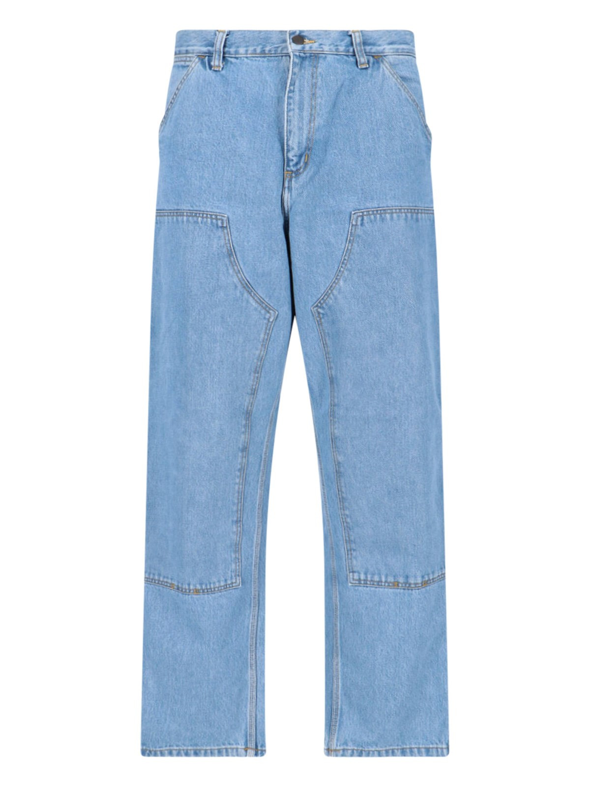 CARHARTT WIP "DOUBLE KNEE" CARPENTER JEANS IN BLUE DENIM WITH BELT LOOPS, BUTTON AND ZIP CLOSURE, FRONT PATCH PANELS, TWO SIDE FLAT POCKETS, HAMMER LOOP AND SIDE TOOL POCKET, SEVERAL FLAT BACK POCKETS, BACK LOGO LABEL, STRAIGHT LEG. PRODUCT INFO PRODUCT CODE I0326990112 COMPOSITION: 100% COTTON SIZE AND FIT: SOFT FIT MADE IN: TUNISIA - "DENIM" SIZE SCALE