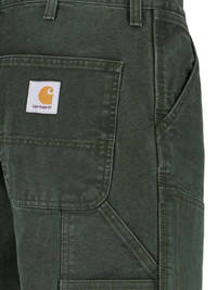 CARHARTT WIP DOUBLE KNEE PANTS IN GREEN COTTON WITH MID WAIST, BELT LOOPS, BUTTON AND ZIP CLOSURE, TWO FRONT POCKETS, PANEL DETAIL ON THE FRONT, TWO BACK POCKETS WITH LOGO LABEL DETAIL, TWO SIDE CARGO POCKETS, HAMMER HOLDER LOOP DETAIL, STRAIGHT LEG. PRODUCT INFO PRODUCT CODE I034796494O COMPOSITION: 100% ORGANIC COTTON SIZE AND FIT: SOFT FIT MADE IN: TUNISIA - PRODUCT MADE FROM ORGANIC MATERIALS