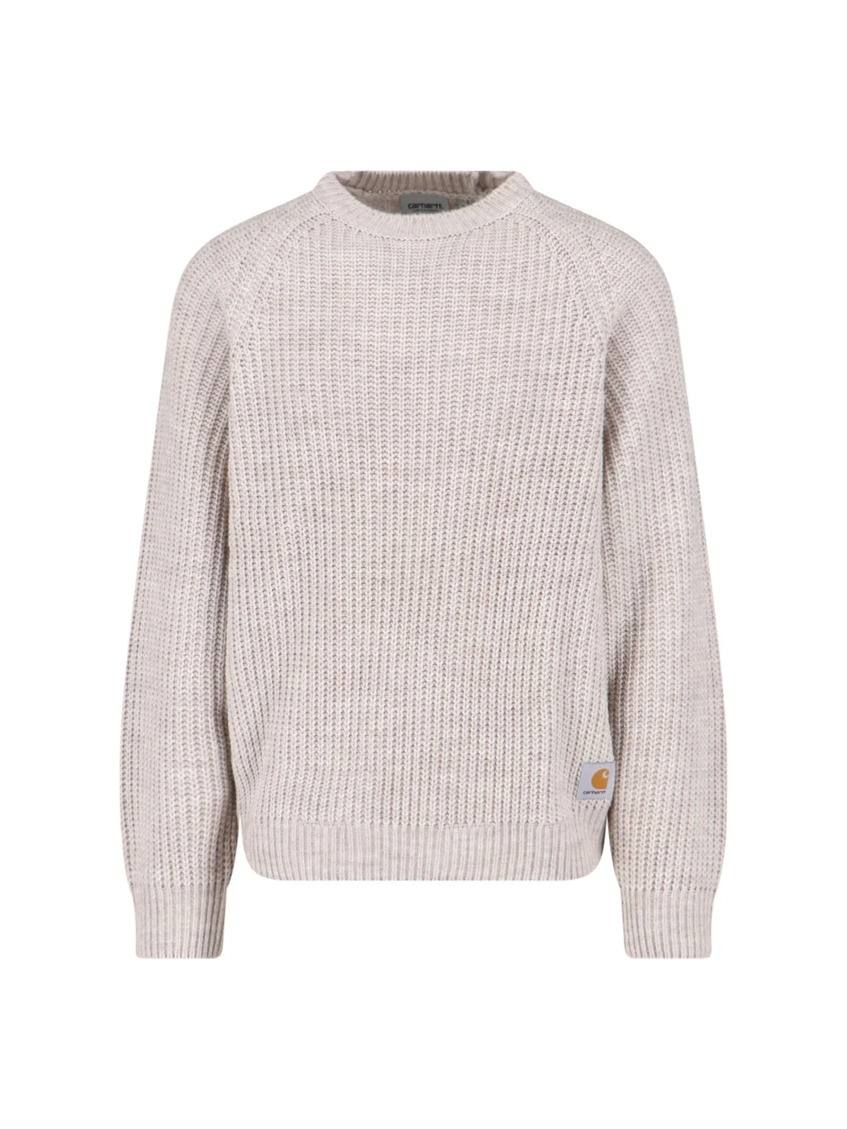 CARHARTT WIP 'FIRTH' CREW NECK SWEATER IN BEIGE FABRIC WITH KNIT, LONG SLEEVES, FRONT LOGO PATCH DETAIL, RIBBED TRIMS, STRAIGHT HEM. PRODUCT INFO PRODUCT CODE I0353882LPXX COMPOSITION: 80% ACRYLIC, 10% WOOL, 5% VISCOSE, 5% ALPACA WOOL SIZE AND FIT: SOFT FIT MADE IN: ROMANIA