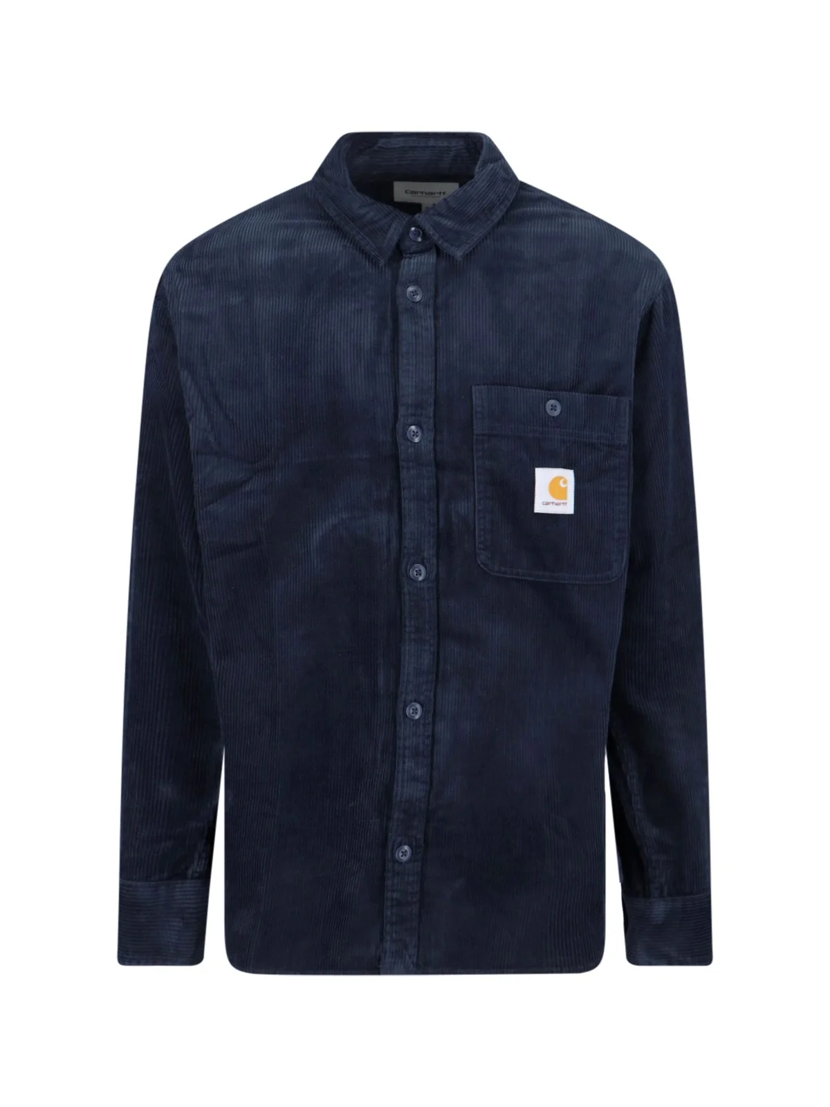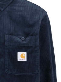 CARHARTT WIP 'FLINT' NAVY BLUE COTTON SHIRT WITH CLASSIC COLLAR, BUTTON CLOSURE, LONG SLEEVES, FRONT BUTTON POCKET, CONTRAST LOGO LABEL DETAIL ON THE FRONT, BUTTON CUFFS, STRAIGHT HEM. PRODUCT INFO PRODUCT CODE I035837J0XX COMPOSITION: 10% COTTON SIZE AND FIT: SOFT FIT MADE IN: CAMBODIA