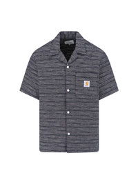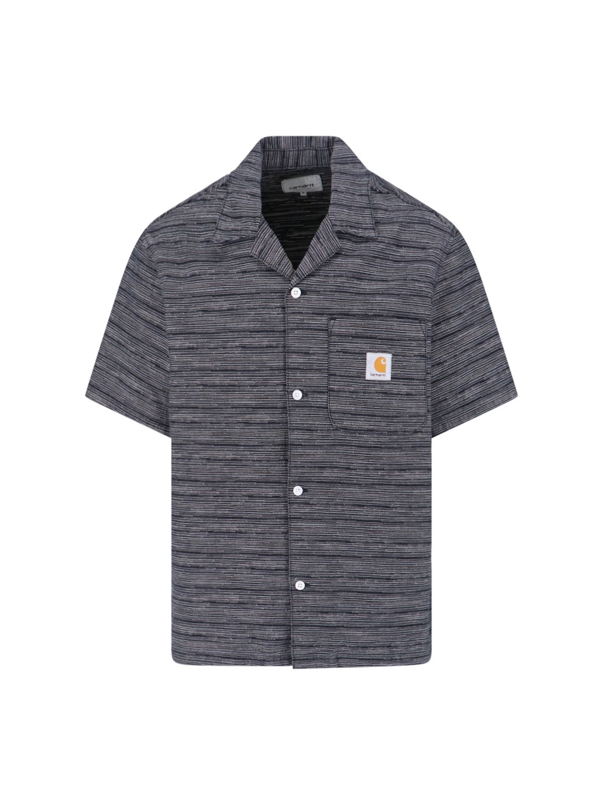 CARHARTT WIP 'GELLAR' SHIRT IN DARK GREY COTTON WITH MULTICOLOR STRIPE PATTERN, CAMP COLLAR, SHORT SLEEVES, BUTTON CLOSURE, LOGO LABEL DETAIL, FLAT CHEST POCKET, LOGO LABEL DETAIL, STRAIGHT HEM. PRODUCT INFO PRODUCT CODE I03556930H02 COMPOSITION: 100% COTTON SIZE AND FIT: REGULAR FIT MADE IN: TUNISIA