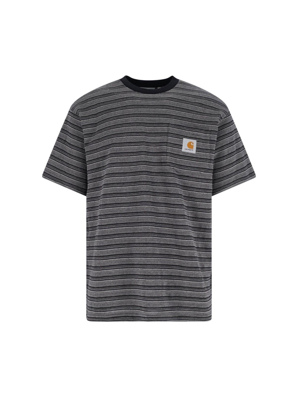 CARHARTT WIP "GELLAR" GRAY COTTON T-SHIRT WITH CREW NECK, SHORT SLEEVES, STRIPED PATTERN, CHEST LOGO PATCH, STRAIGHT HEM. PRODUCT INFO PRODUCT CODE I03514130HXX COMPOSITION: 100% COTTON SIZE AND FIT: REGULAR FIT MADE IN: BANGLADESH