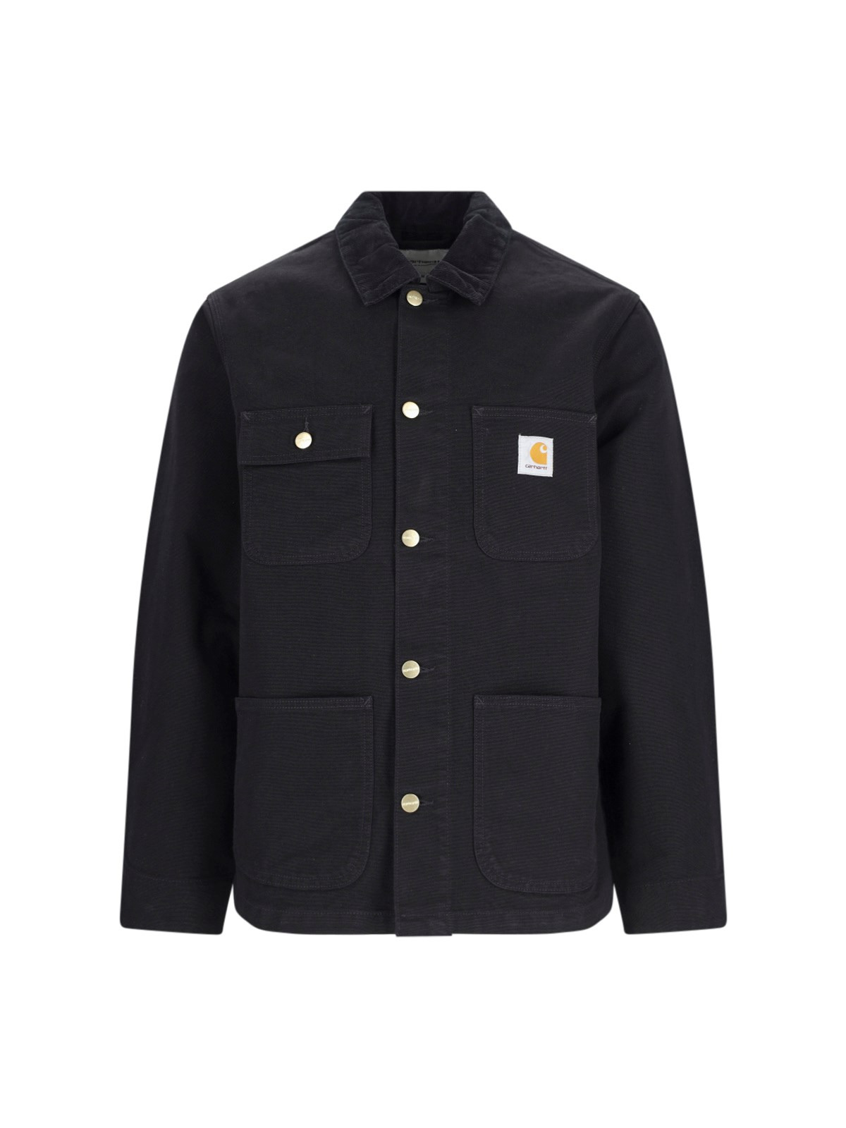 CARHARTT WIP GOLD BUTTON JACKET IN BLACK COTTON WITH CLASSIC VELVET COLLAR, BUTTON CUFFS, TWO CHEST BUTTON POCKETS, LOGO LABEL, TWO SIDE PATCH POCKETS, STRAIGHT HEM. PRODUCT INFO PRODUCT CODE I03151900E02 COMPOSITION: 100% COTTON SIZE AND FIT: REGULAR FIT MADE IN: CAMBODIA