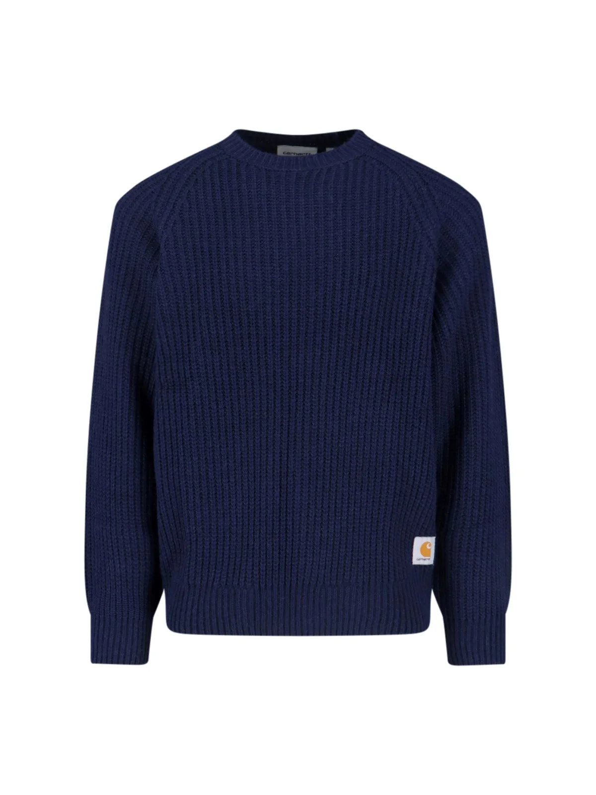 CARHARTT WIP LOGO CREWNECK SWEATSHIRT IN NAVY BLUE FABRIC WITH CREW NECK, LONG SLEEVES, CONTRAST LOGO LABEL DETAIL ON THE FRONT, RIBBED TRIM, STRAIGHT HEM. PRODUCT INFO PRODUCT CODE I0353881CXX COMPOSITION: 80% ACRYLIC, 10% WOOL, 5% VISCOSE, 5% ALPACA WOOL SIZE AND FIT: REGULAR FIT MADE IN: ROMANIA
