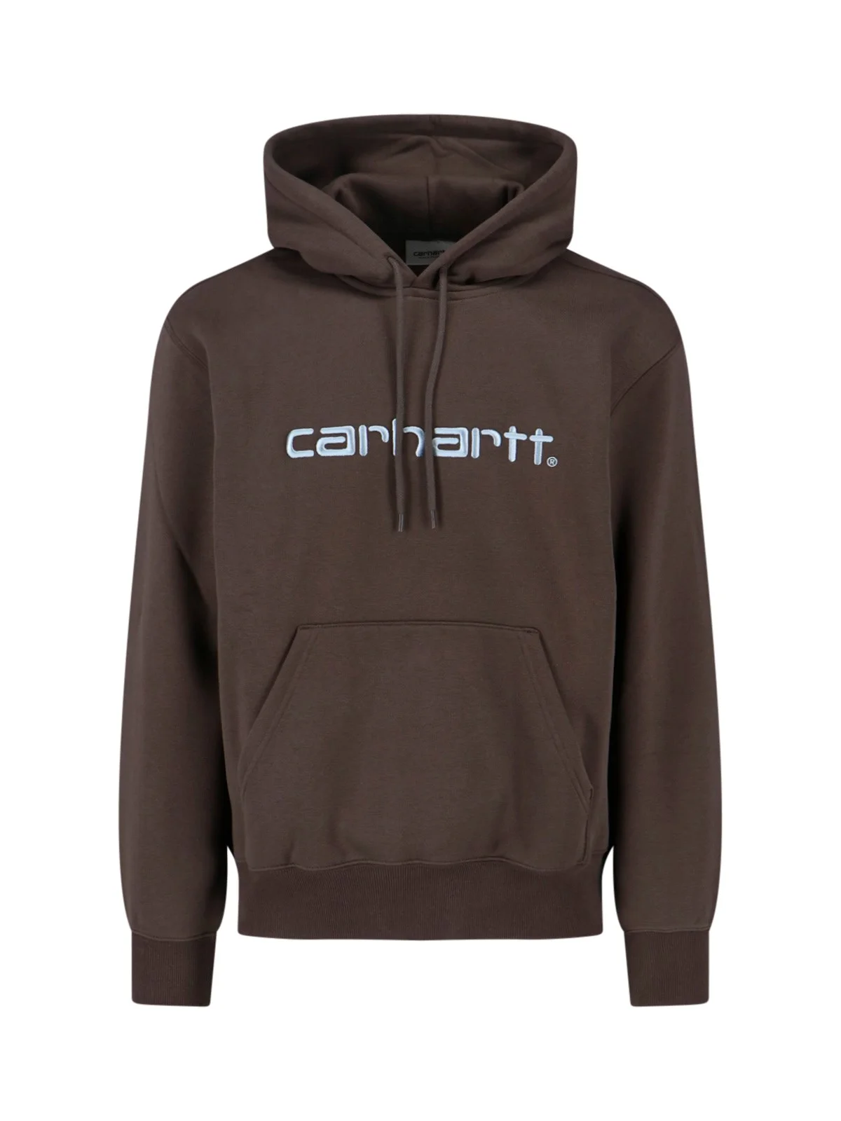 CARHARTT WIP LOGO HOODIE IN DARK BROWN COTTON BLEND WITH DRAWSTRING HOOD, MAXI FRONT POCKET, CONTRAST LOGO EMBROIDERY AT THE FRONT, RIBBED TRIM, STRAIGHT HEM. PRODUCT INFO PRODUCT CODE I0305473CEXX COMPOSITION: 58% COTTON, 42% POLYESTER SIZE AND FIT: REGULAR FIT MADE IN: PAKISTAN