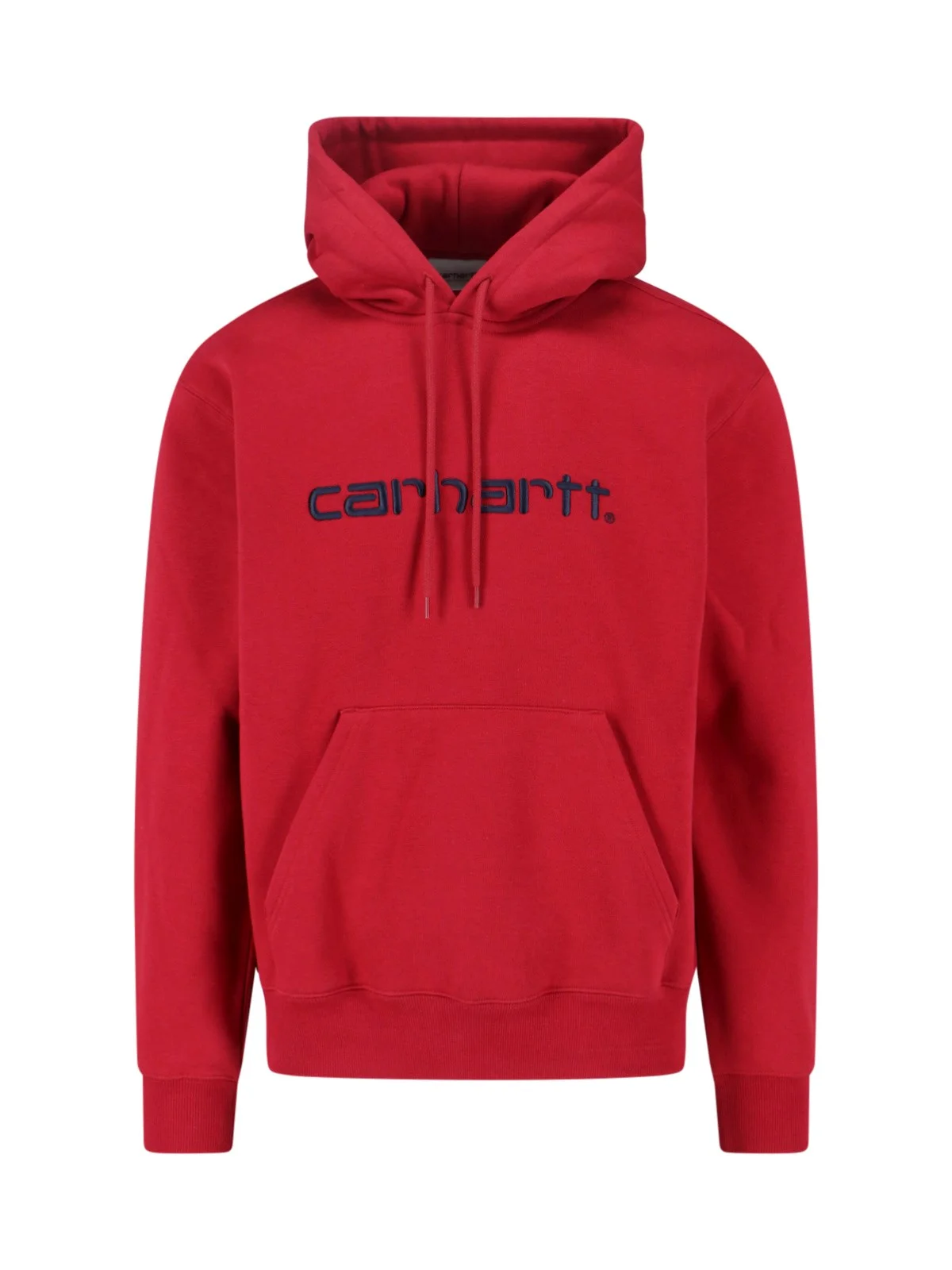 CARHARTT LOGO HOODIE IN RED COTTON BLEND WITH DRAWSTRING HOOD, MAXI FRONT POCKET, CONTRAST LOGO EMBROIDERY AT THE FRONT, RIBBED TRIM, STRAIGHT HEM. PRODUCT INFO PRODUCT CODE I03054738FXX COMPOSITION: 58% COTTON, 42% POLYESTER SIZE AND FIT: REGULAR FIT MADE IN: PAKISTAN