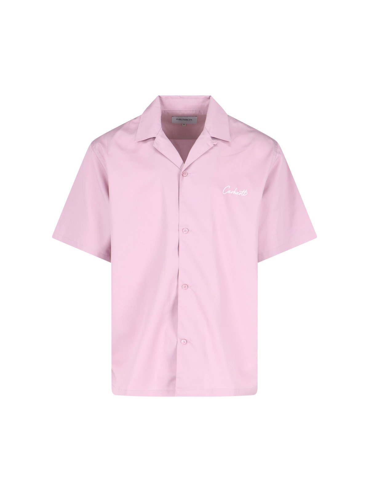 CARHARTT WIP 'S/S DELRAY' SHIRT IN PINK COTTON BLEND WITH CAMP COLLAR, SHORT SLEEVES, BUTTON CLOSURE, WHITE LOGO EMBROIDERY ON THE CHEST, STRAIGHT HEM PRODUCT INFO PRODUCT CODE I0314652QSXX COMPOSITION: 60% TENCEL, 40% COTTON SIZE AND FIT: SOFT FIT MADE IN: BANGLADESH