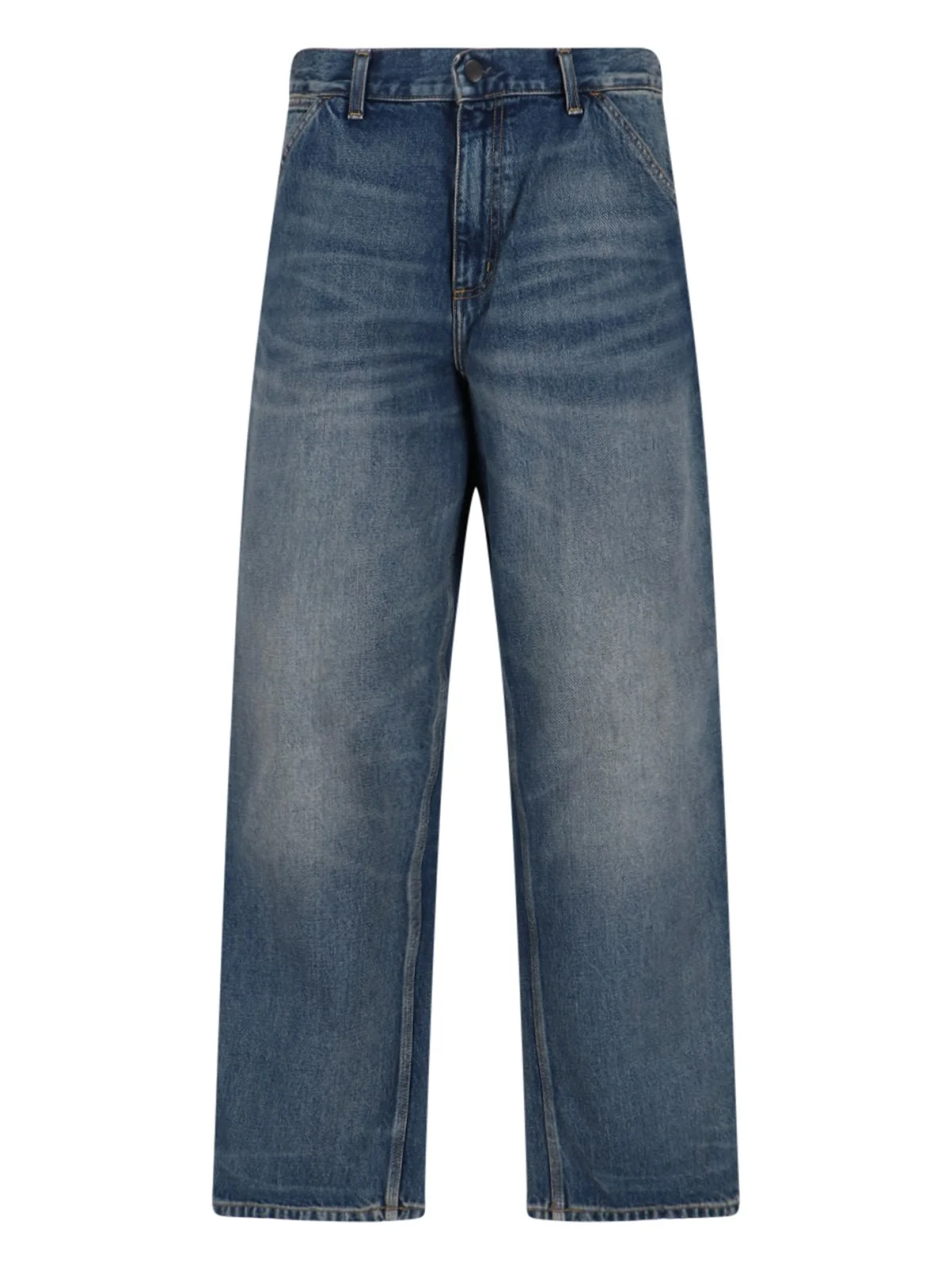CARHARTT WIP STRAIGHT 'BRANDON' BLUE ORGANIC COTTON DENIM JEANS WITH MID WAIST, BUTTON AND ZIP CLOSURE, BELT LOOPS, TWO SIDE POCKETS, TWO BACK POCKETS, TWO SIDE FLAT POCKETS, BACK LOGO PATCH, STRAIGHT LEG. PRODUCT INFO PRODUCT CODE I032024014Q COMPOSITION: 100% ORGANIC COTTON SIZE AND FIT: REGULAR FIT MADE IN: TUNISIA - PRODUCT MADE FROM ORGANIC MATERIALS