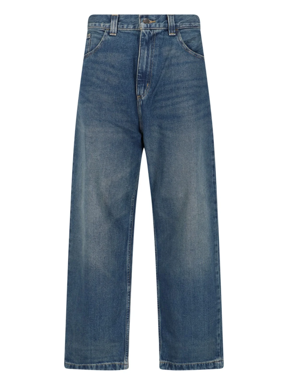 CARHARTT WIP STRAIGHT BLUE COTTON DENIM JEANS WITH MID WAIST, BUTTON AND ZIP CLOSURE, BELT LOOPS, FIVE POCKET DESIGN, BACK LOGO PATCH, STRAIGHT LEG. PRODUCT INFO PRODUCT CODE I035893014Q COMPOSITION: 100% COTTON SIZE AND FIT: REGULAR FIT MADE IN: PAKISTAN