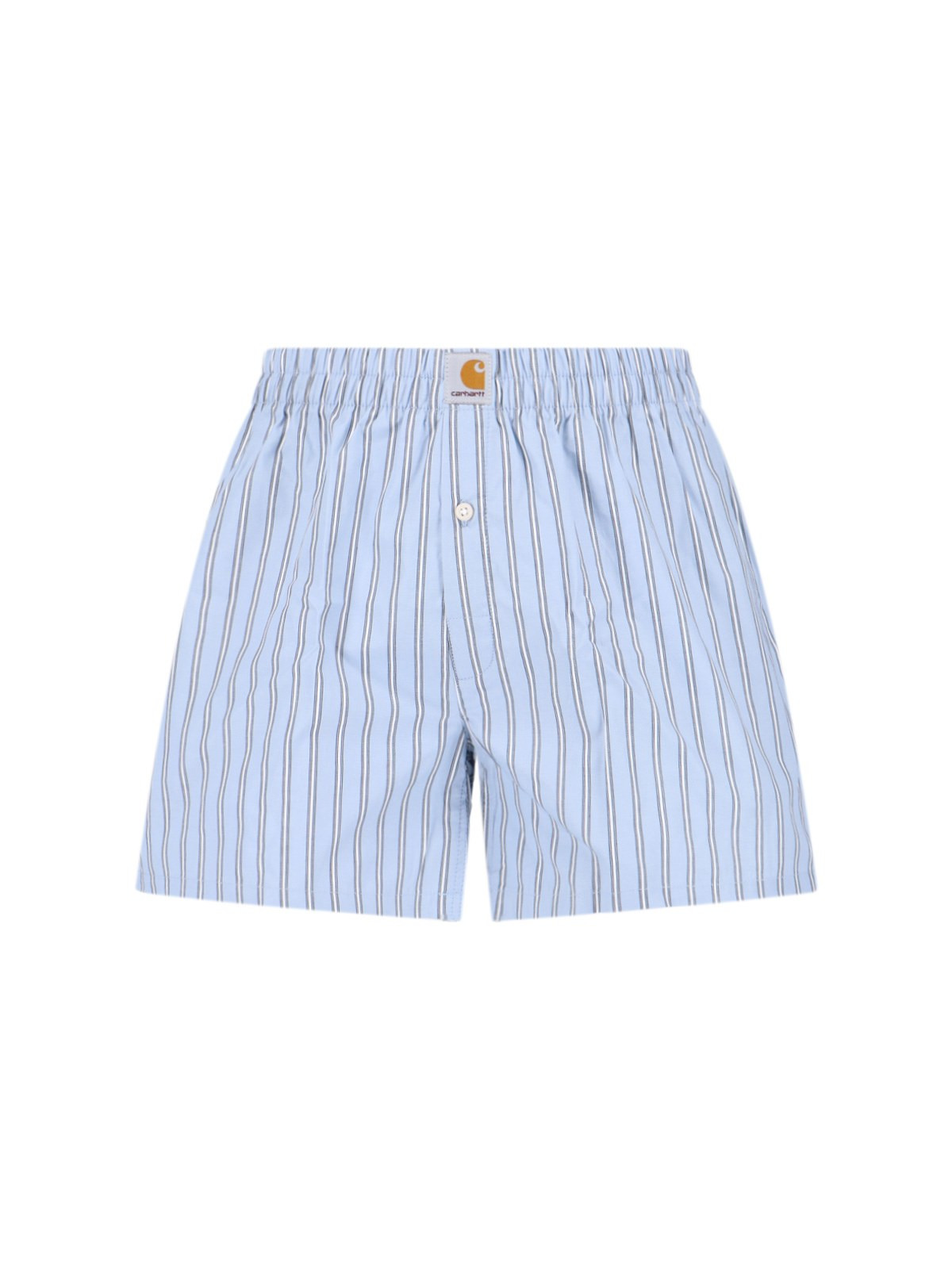 CARHARTT WIP STRIPED BOXERS IN BLUE COTTON WITH WHITE DETAILS, FRONT LOGO LABEL, ELASTIC WAISTBAND, STRAIGHT HEM. PRODUCT INFO PRODUCT CODE I03235530OXX COMPOSITION: 100% COTTON SIZE AND FIT: REGULAR FIT MADE IN: PAKISTAN