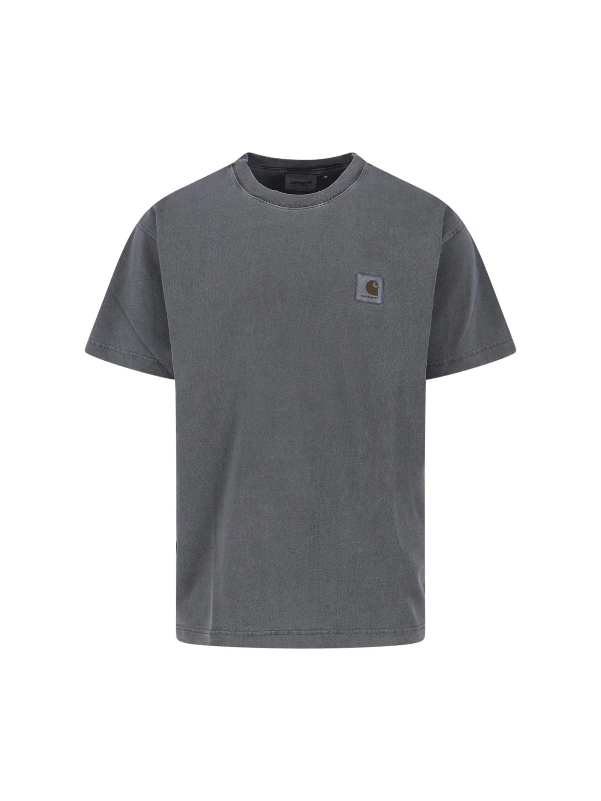 CARHARTT WIP VISTA GRAY COTTON T-SHIRT WITH CREWNECK, SHORT SLEEVES, FRONT LOGO PATCH DETAIL, AND STRAIGHT HEM. PRODUCT INFO PRODUCT CODE I03078089GD COMPOSITION: 100% COTTON SIZE AND FIT: REGULAR FIT MADE IN: BANGLADESH