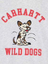 CARHARTT WIP 'WILD DOG' GREY COTTON CREW NECK T-SHIRT WITH SHORT SLEEVES, DROPPED SHOULDERS, 'WILD DOG' LOGO PRINT DETAIL ON THE FRONT, RIBBED TRIMS, STRAIGHT HEM. PRODUCT INFO PRODUCT CODE I035450482XX COMPOSITION: 100% COTTON SIZE AND FIT: REGULAR FIT MADE IN: BANGLADESH