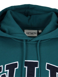 CARHARTT WIP WIP HOODIE IN GREEN COTTON BLEND WITH DRAWSTRING HOOD, MAXI BLUE LOGO PATCH ON THE CHEST, RIBBED TRIM, AND STRAIGHT HEM. PRODUCT INFO PRODUCT CODE I0347192PBXX COMPOSITION: 74% COTTON, 26% POLYESTER SIZE AND FIT: BOXY FIT MADE IN: CAMBODIA