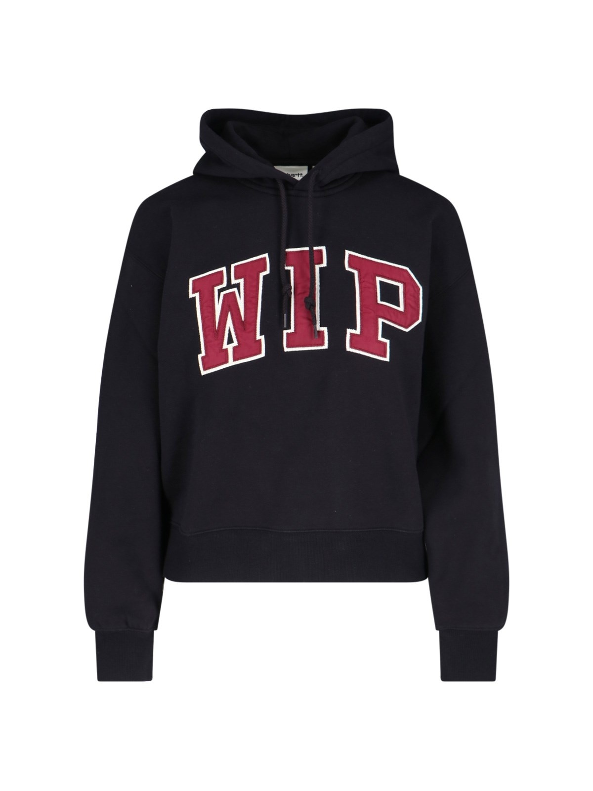 CARHARTT WIP 'WIP' HOODIE IN BLACK COTTON BLEND WITH DRAWSTRING HOOD, MAXI RED LOGO PATCH ON THE CHEST, RIBBED TRIMS, STRAIGHT HEM. PRODUCT INFO PRODUCT CODE I03471989XX COMPOSITION: 74% COTTON, 26% POLYESTER SIZE AND FIT: BOXY FIT MADE IN: CAMBODIA