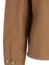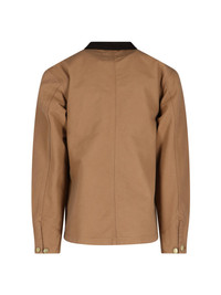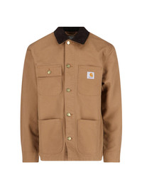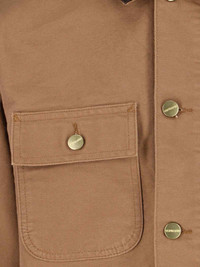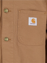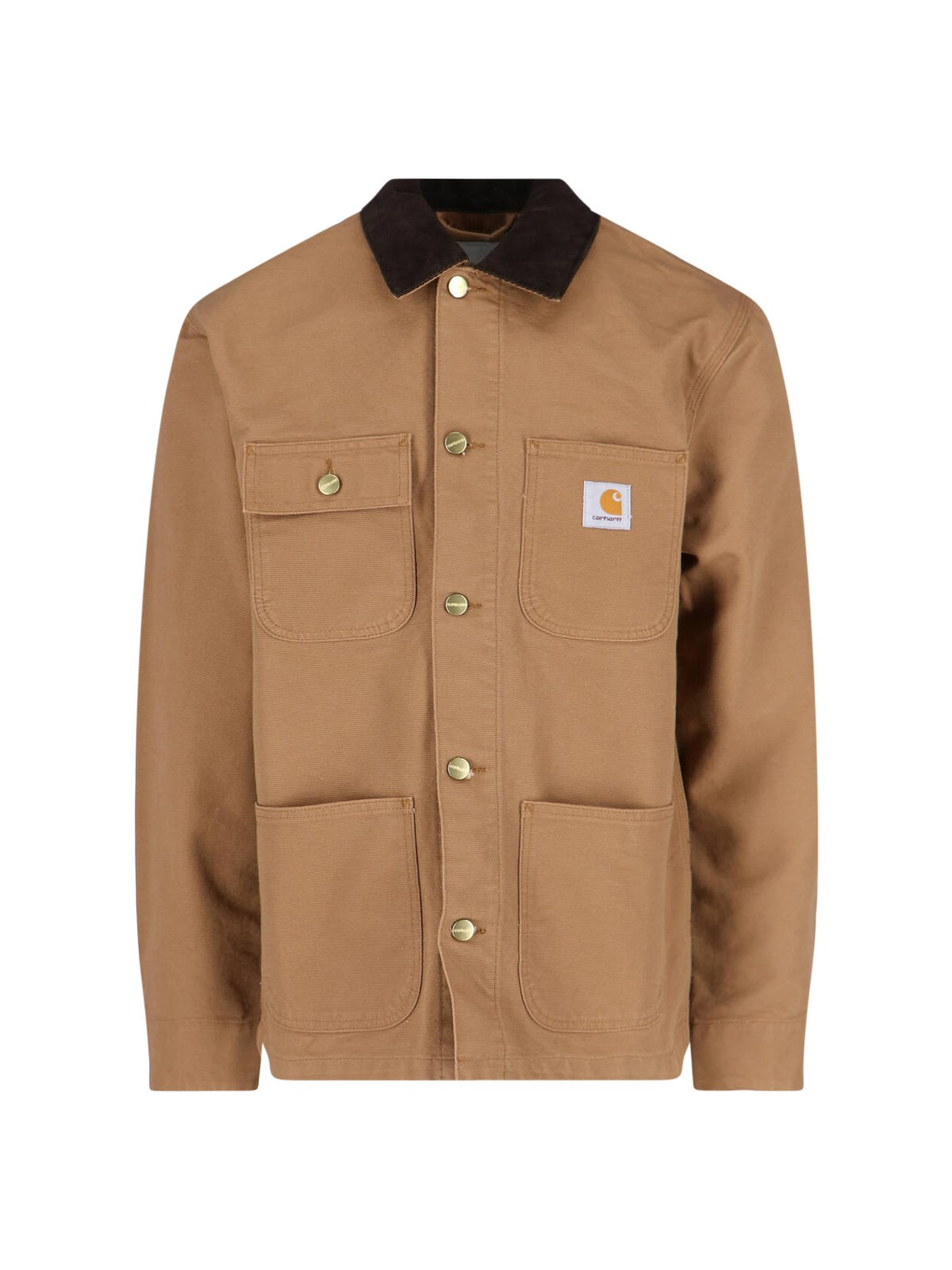 CARHARTT WIP MICHIGAN BROWN COTTON WORK JACKET WITH CLASSIC BLACK VELVET COLLAR, BUTTON CLOSURE, BUTTON FLAP POCKET ON THE CHEST, THREE FLAT FRONT POCKETS, LOGO LABEL DETAIL, BUTTON CUFFS, STRAIGHT HEM. PRODUCT INFO PRODUCT CODE I03151900S02 COMPOSITION: 100% COTTON SIZE AND FIT: REGULAR FIT MADE IN: TUNISIA